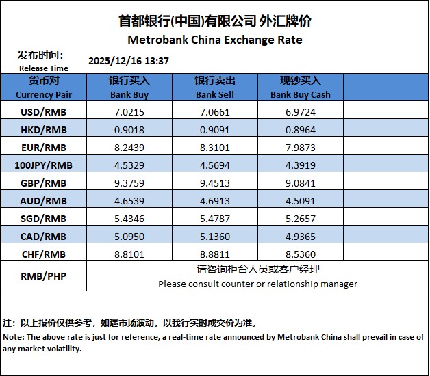 RMB, USD, PHP, HKD, EUR, JPY, GBP, AUD, CAD, SGD